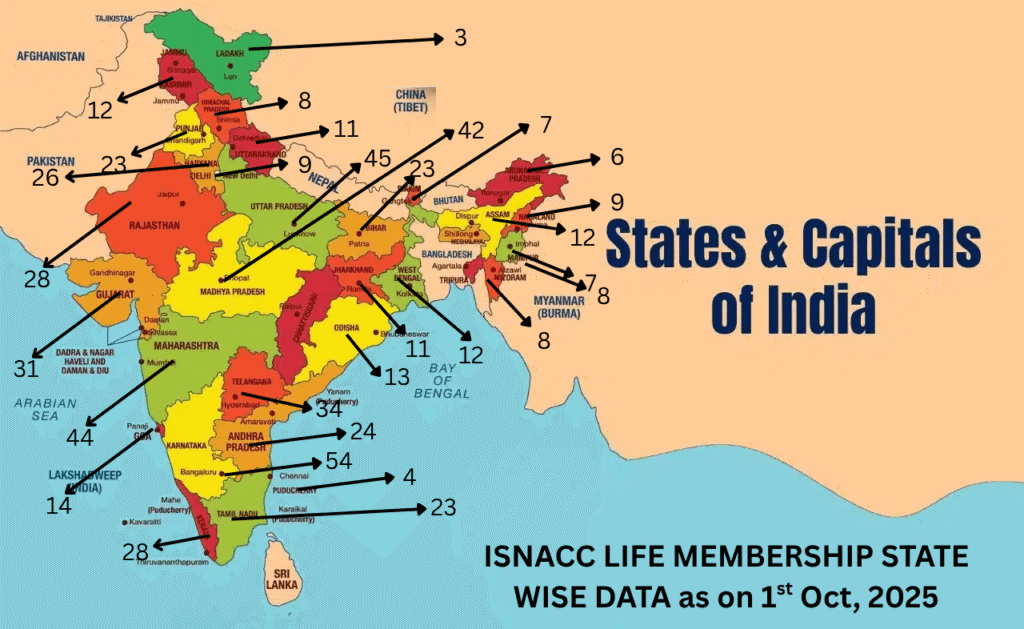 The ISNACC Legacy 25Years since Inception 1000+Members Worldwide 40+Hospitals and Organisations Imparting NANC Trainings Affiliated Societies Numbers Speak No. of Webiste Visitors E-Learning Sessions + States & UT's + Affiliated Societies + ISNACC MEMBER DATA (as on 01.10.2025)